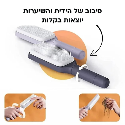מסרק מסתובב ומתכוונן לניקוי עצמי | שיער מסודר ונקי בלי לאסוף שערות בידיים